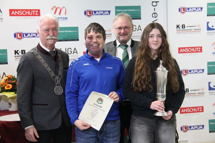 Der neue Landesschützenkönig kommt mit Thomas Zimmermann (24,0 Teiler) aus dem. Schützengau Neunburg v. Wald. Seine Ritter sind Eric Pilhofer (28,1) vom Gau Sulzbach-Rosenberg und Matthias Reis (31,6) aus dem Gau Nabburg. Die neue Schützenliesl konnte den Titel für den Schützengau Burglengenfeld verteidigen. Anna Haberhauer gab den besten Schuss mit einem 12 Teiler ab und vertritt heuer beim Bundeskönigsschießen 2026 den Landesverband. Stellvertreterinnen sind Julia Peltzer (23,1) vom Gau Nabburg und Monika Todt (27,8) aus dem Gau Roding.